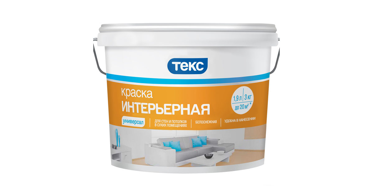 Предназначена для окраски стен и потолков внутри сухих помещений по бетонным, оштукатуренным,