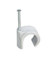 Полипропиленовая скоба с закаленным стальным гвоздем для круглых кабелей, используемых для электромонтажа внутри помещений.